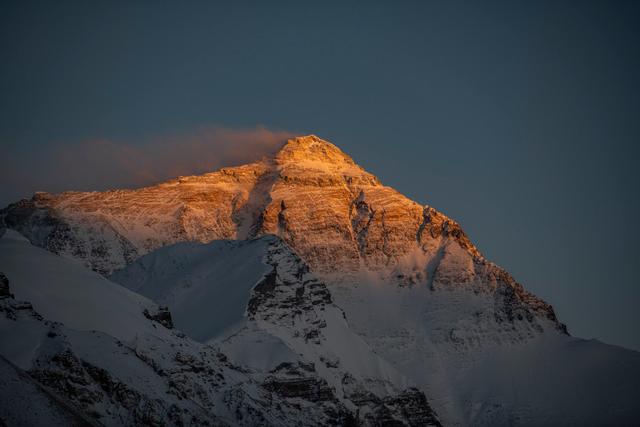 落日余暉灑在珠峰峰頂(5月4日攝)。新華社記者 孫非 攝