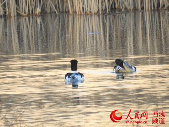調查結束,在拉魯濕地共發(fā)現(xiàn)鳥類50種3431只,隸屬9目19科?!疤攸c包括兩個方面——水鳥豐富、猛禽眾多?!睏顦方榻B,“水鳥共計21種,占鳥類種數(shù)的42%,數(shù)量3223只,占總數(shù)的93.94%。其中,數(shù)量多的鳥類為斑頭雁1735只、赤麻鴨730只、白骨頂268只、綠頭鴨170只、普通秋沙鴨86只。此外,發(fā)現(xiàn)國家Ⅰ級保護鳥類白尾海雕;國家Ⅱ級保護鳥類高山兀鷲、雀鷹、白頭鷂、白尾鷂、黑鳶、大鵟、紅隼、游隼、喜山鵟等10種。”