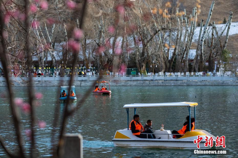 2月24日,西藏拉薩宗角祿康公園,民眾蕩舟游玩。隨著近日氣溫回暖,西藏的春天也悄然到來。中新社記者 何蓬磊 攝