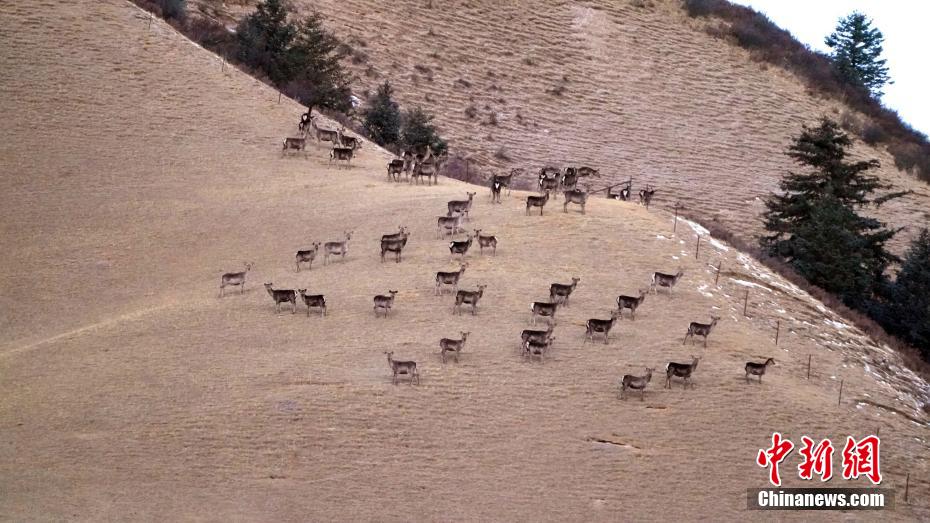 2月5日,在祁連山國家公園甘肅南段發(fā)現(xiàn)近百只野生馬鹿種群。 吳生文 攝