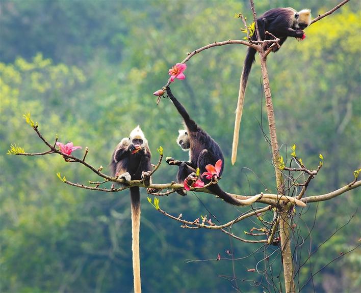 在廣西崇左白頭葉猴國家級自然保護(hù)區(qū)拍攝的白頭葉猴(資料照片)。新華社發(fā) (廣西崇左白頭葉猴國家級自然保護(hù)區(qū)提供)
