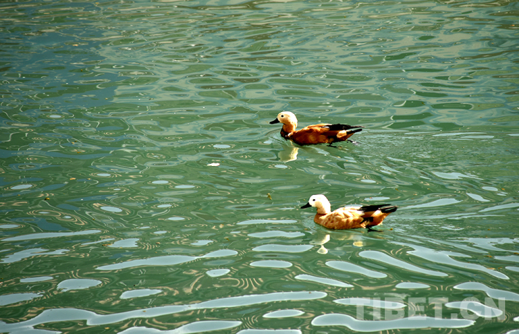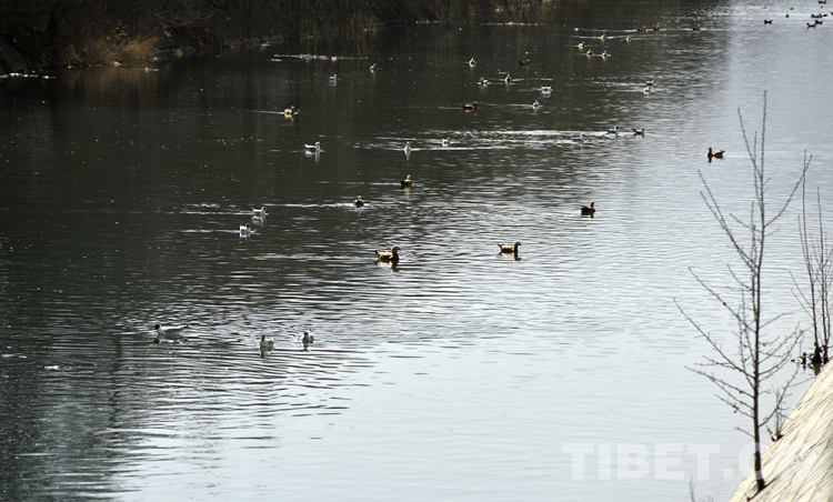 圖為拉薩市太陽島附近河面上游弋的水鳥 攝影:王媛媛