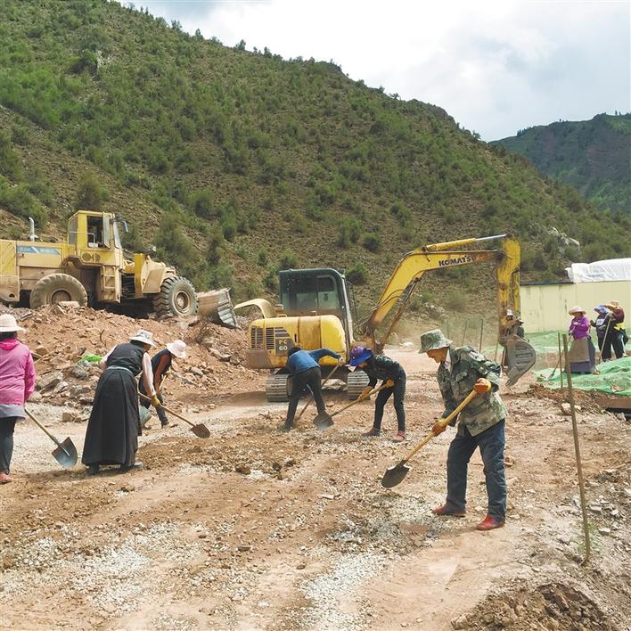 圖為農(nóng)牧民群眾積極參與道路工程建設(shè)。(圖片由昌都市卡若區(qū)脫貧攻堅(jiān)指揮部提供)