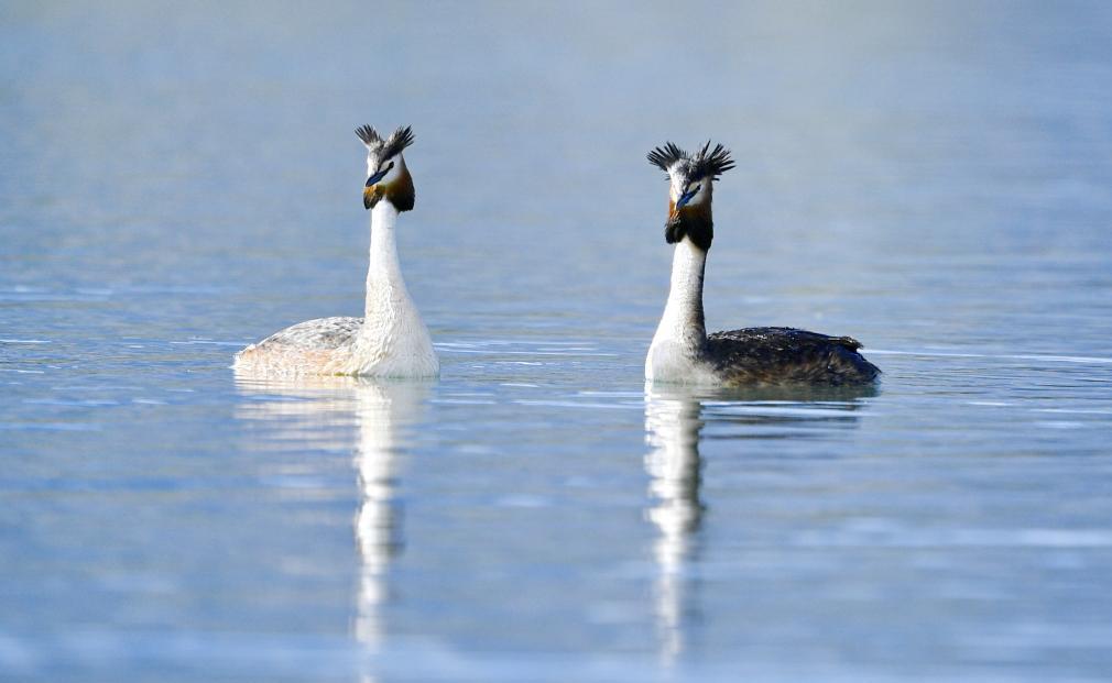 夏日里,鳳頭??和小??在西藏拉薩拉魯濕地國家級自然保護區(qū)水面上嬉戲。[詳細(xì)] -