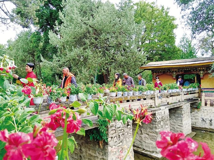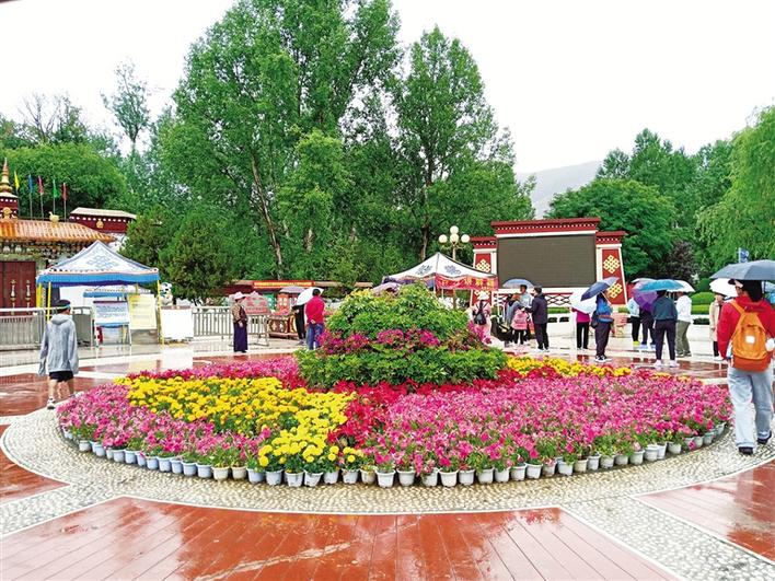 在羅布林卡廣場,擺放的花卉吸引人們拍照打卡留念。走進園內(nèi),一陣清涼感迎面撲來,雨后的羅布林卡空氣濕潤,除了花草的香味還可以聞到一絲泥土的氣息。充沛的雨水讓園內(nèi)的樹木更加蔥郁、花朵更加嬌艷。作為每年盛夏時期拉薩市區(qū)內(nèi)最佳的避暑去處,羅布林卡吸引著本地市民群眾、區(qū)外游客紛至沓來。