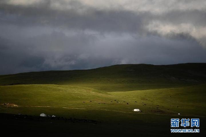 這是8月3日在青海省果洛藏族自治州瑪沁縣當(dāng)洛鄉(xiāng)貢龍村拍攝的夏季草場。新華社記者 張龍 攝