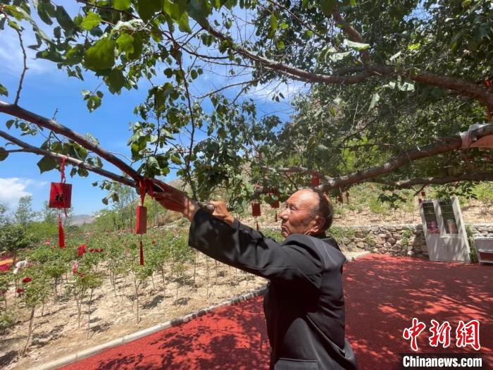 圖為馬進(jìn)才在禹王峽南種下的第一棵山杏樹?!∑罾C娟 攝