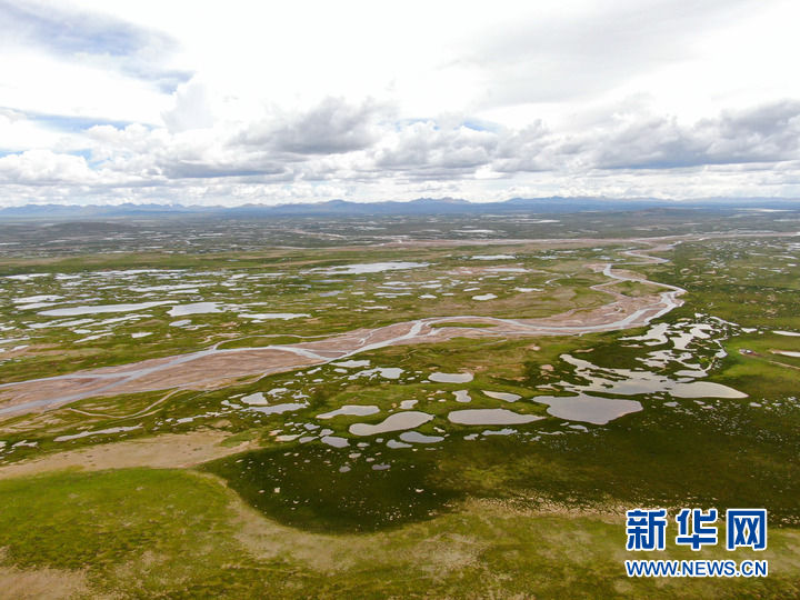 這是7月23日拍攝的長(zhǎng)江源地區(qū)的查旦濕地(無(wú)人機(jī)照片)。新華社記者 張龍 攝