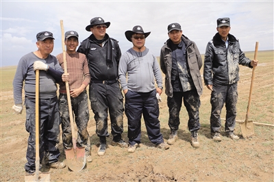 可可西里保護區(qū)工作人員在巡山途中。右三為布周??煽晌骼锕芾硖幑﹫D