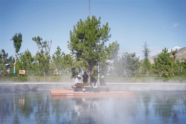 當日,公園內(nèi)人來人往,很是熱鬧。人工湖水清澈見底,景觀橋蜿蜒伸向遠方,遠處的青山,與近處的綠水,勾勒出一幅絕美的風景圖。老人在湖邊的座椅上休息,孩子跟著父母在公園內(nèi)“打卡”留念,眼前的情景處處彰顯著山南市民如今的幸福生活。