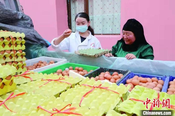 圖為青海貴德縣新街鄉(xiāng)林下雞養(yǎng)殖合作社收獲雞蛋。才讓本 攝