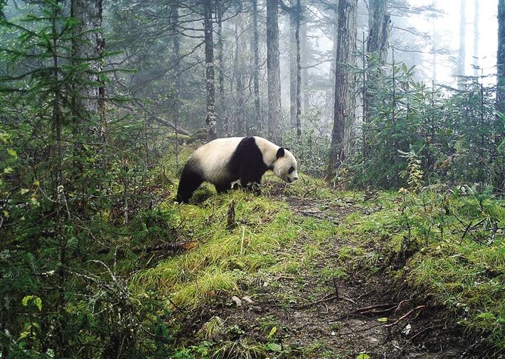 這是大熊貓國家公園甘肅白水江片區(qū)的紅外相機拍攝到的野生大熊貓活動畫面。(資料圖)