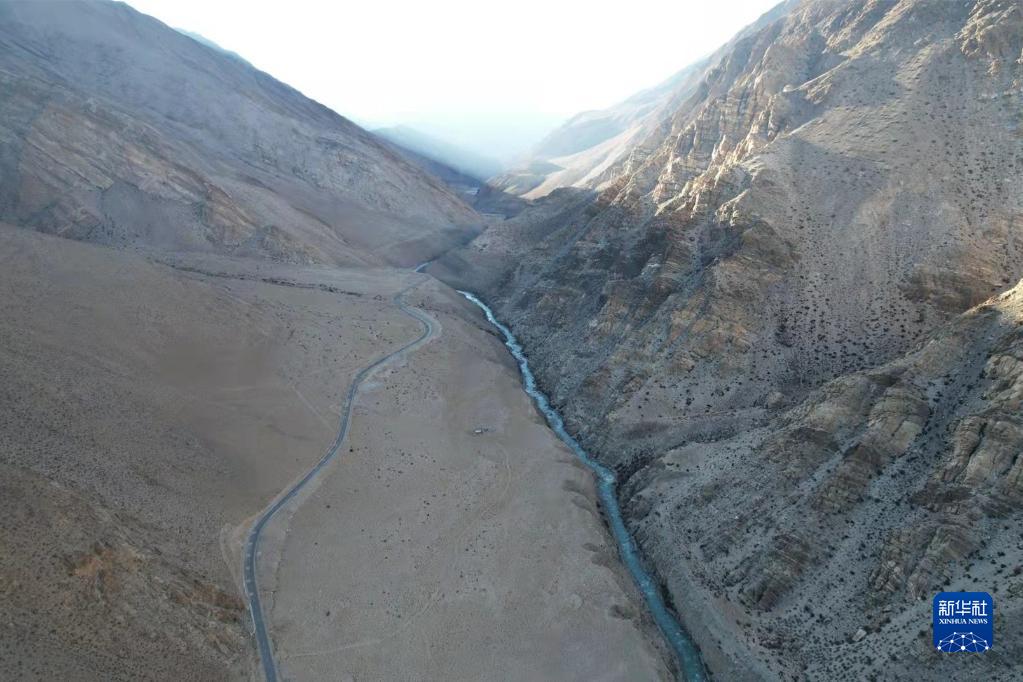離開參木達(dá)村,沿扎嘎曲逆流而上行駛約20分鐘后,公路旁的扎嘎曲開始在峽谷中東西向蜿蜒而行,進(jìn)入整條河流的最狹窄處。記者在S516省道29公里處停車航拍,只見公路與河流像兩條平行的曲線,時遠(yuǎn)時近,向遠(yuǎn)方延伸。