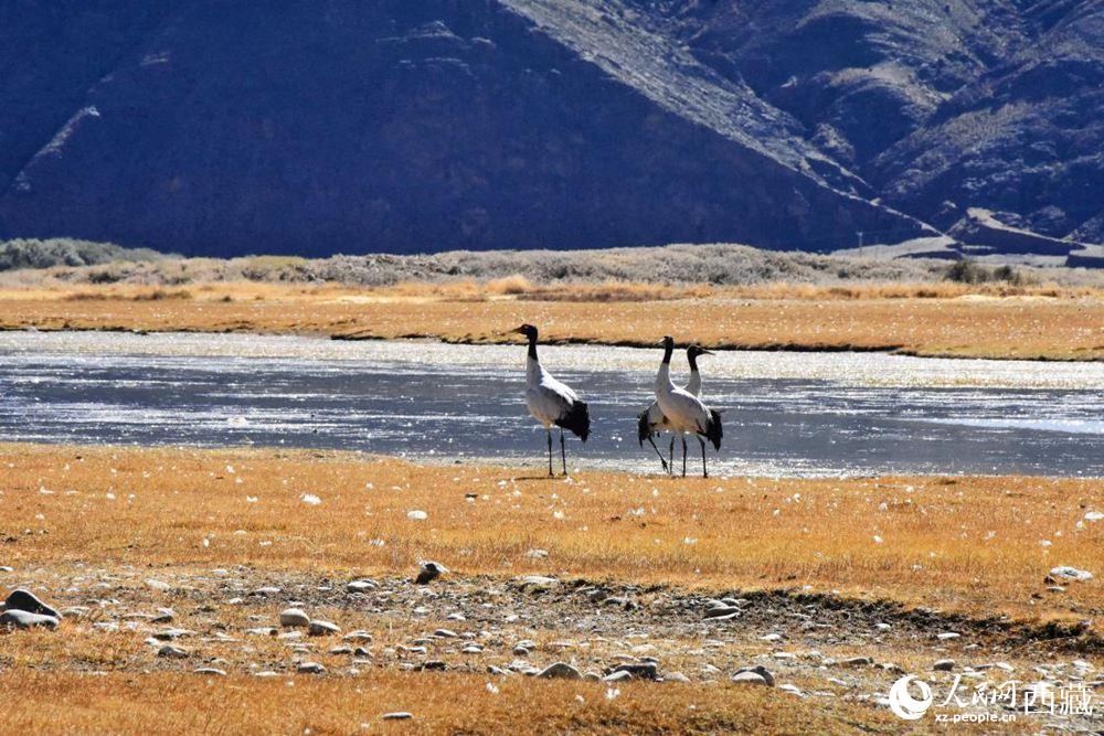 黑頸鶴。人民網(wǎng) 李海霞 攝