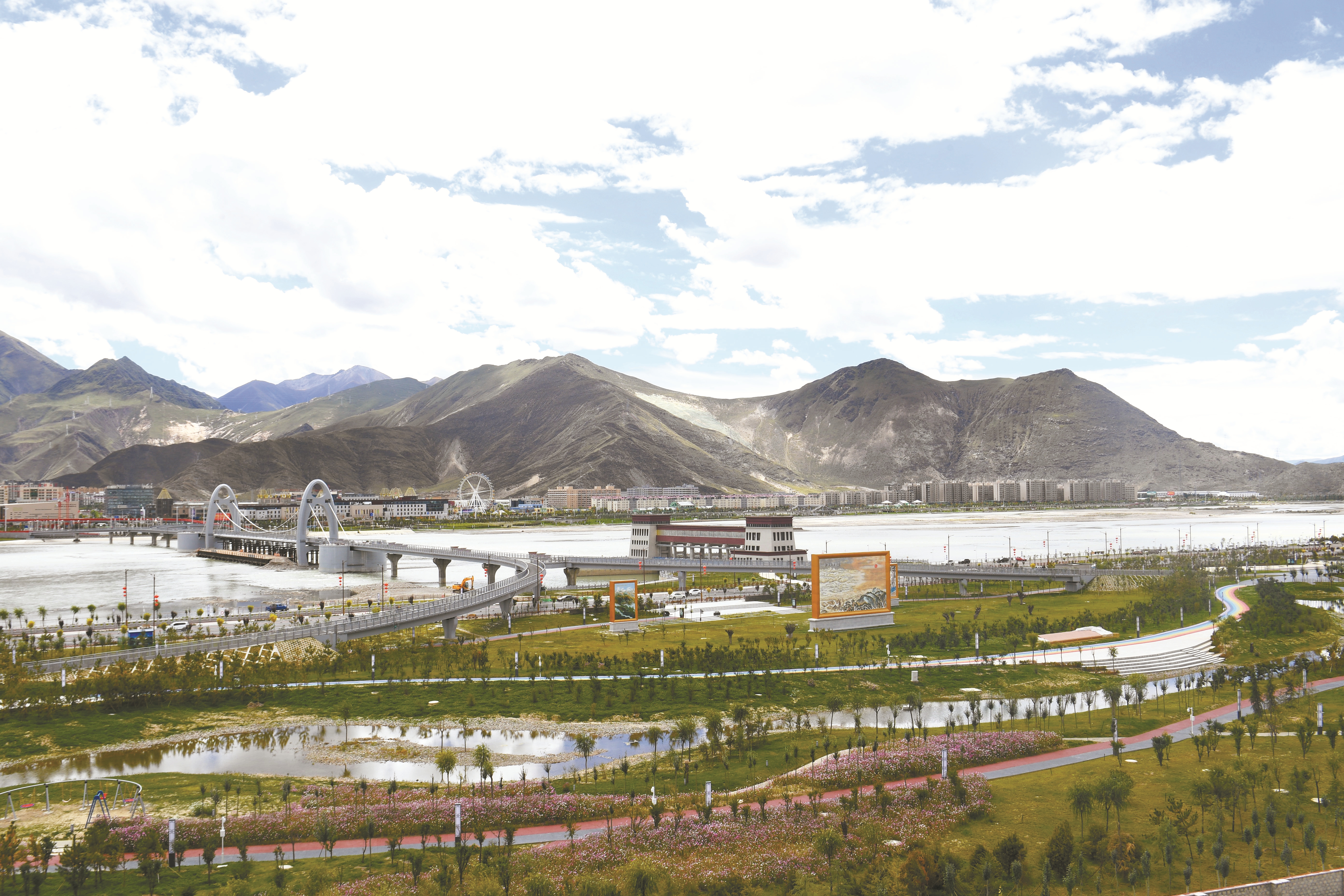 圖為綠水青山環(huán)繞中的拉薩中華文化主題公園。 拉薩融媒記者 巴桑次仁攝