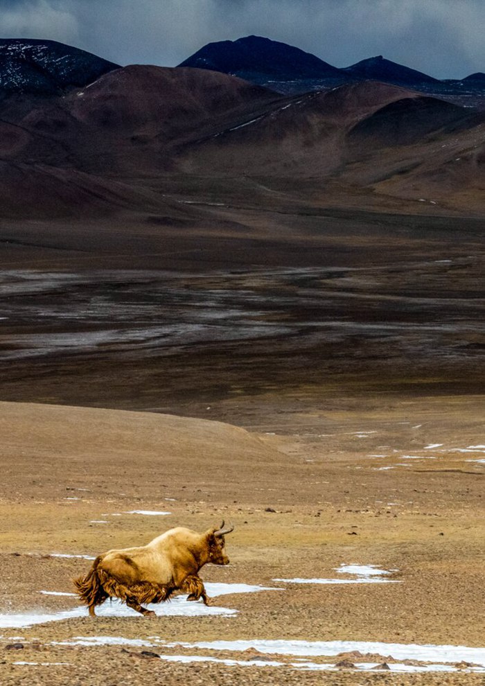 阿里改則縣境內(nèi)金絲野牦牛。