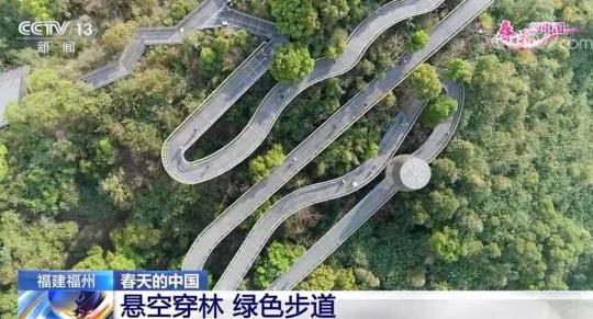 現(xiàn)在我們看到的是位于福建福州中心城區(qū)的空中森林步道,全長19公里,橫貫了福州境內(nèi)的象山、梅峰山、金牛山等多座山體,將城市中心的五大公園串聯(lián)起來,是一個既可以登高覽城又能休閑健身的好去處。