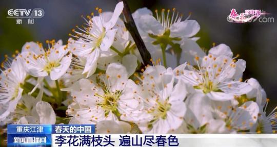 跟隨鏡頭,我們來到重慶江津區(qū)黑灘村,這里的千畝李花正開滿枝頭?;ㄈ餇幭嗌L,花瓣盡情舒展,遠(yuǎn)觀如滿樹雪霜,近賞又清新淡雅。漫山春花芬芳動人,吸引游客紛至沓來。