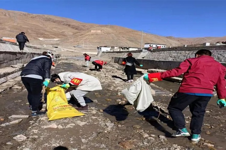 薩嘎縣團(tuán)縣委聯(lián)合縣總工會(huì)、縣婦聯(lián)組織本縣青年志愿者在加布河沿線開展“世界水日”之“‘河’我一起,保護(hù)母親河”凈灘活動(dòng),西部計(jì)劃志愿者、青年志愿者共30余人參與。