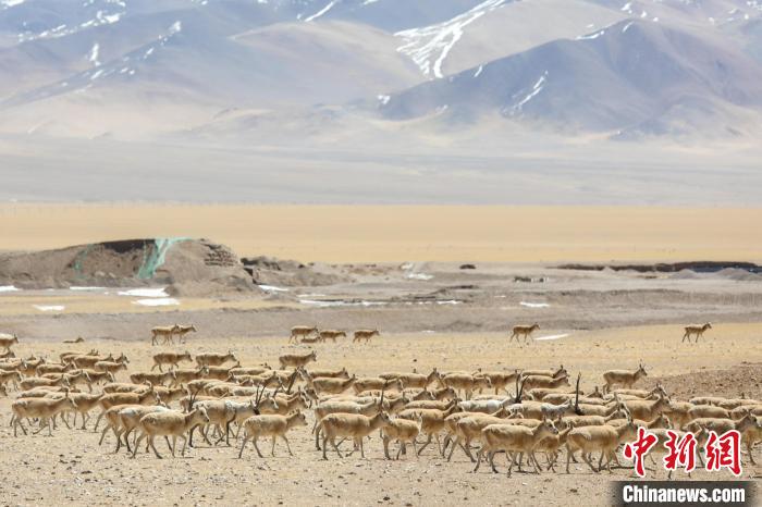 圖為3月27日,西藏改則縣先遣鄉(xiāng)附近的藏羚羊種群?!∵叞?攝