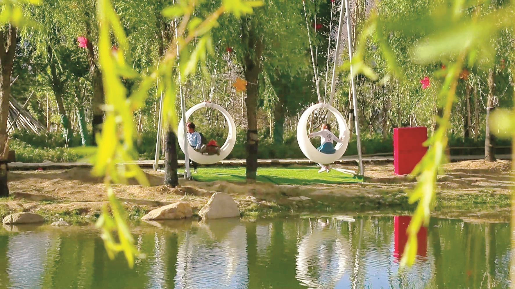 圖為孩子們在優(yōu)美的公園綠水間盡情嬉戲。 拉薩融媒記者 蘭煉平攝
