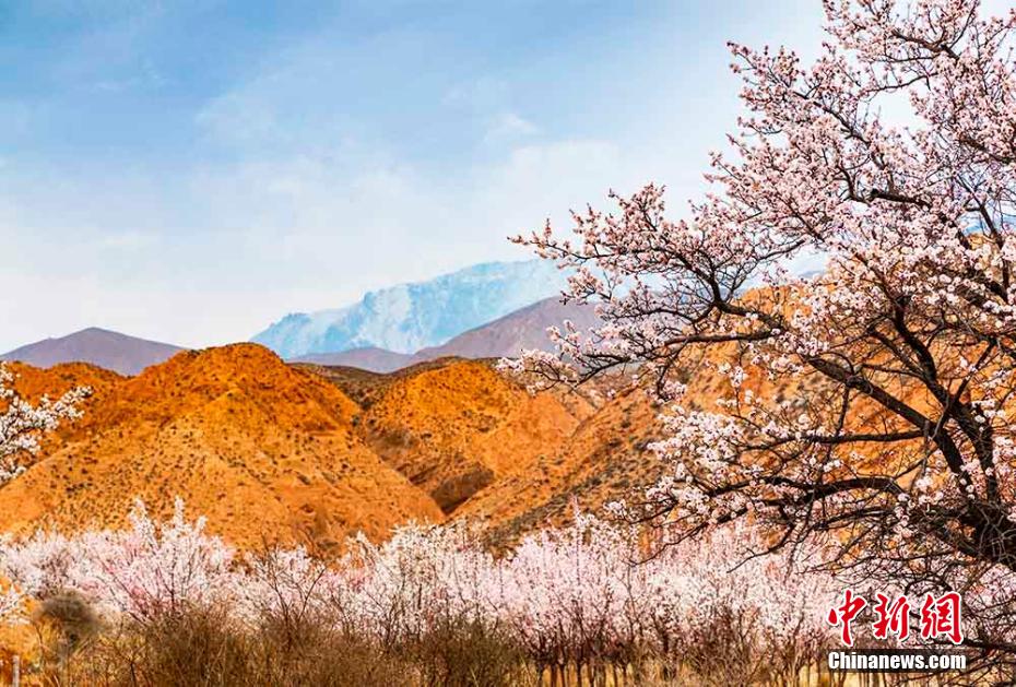 陽春三月,黃河岸畔,素有“高原小江南”之稱的青海省海南藏族自治州貴德縣尕讓鄉(xiāng)阿什貢村的杏花開滿了枝頭,丹霞地貌與杏林互映,五彩繽紛,高原大地生機(jī)盎然。 趙海梅 攝