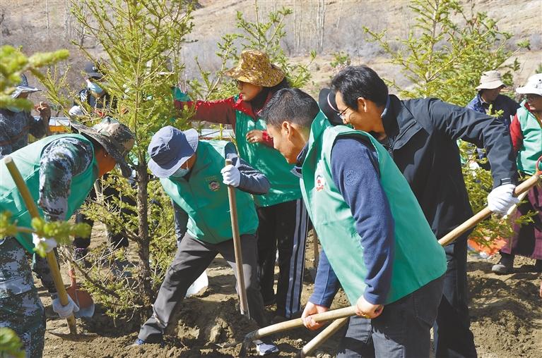 近日,日喀則市江孜縣政協(xié)以創(chuàng)建“委員生態(tài)文明建設(shè)示范點”為契機,組織政協(xié)委員開展義務(wù)植樹造林活動。身著志愿服務(wù)馬甲的“生態(tài)衛(wèi)士”們熱情高漲、干勁十足,揮鍬鏟土、扶植苗木、培實新土,種植松樹、蘋果樹、桃樹共計800余株。