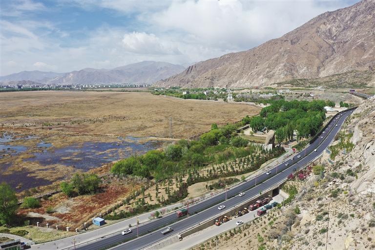 這個季節(jié),行駛在拉薩環(huán)城路,一路花香鳥語,風景獨好。北環(huán)線上的拉魯濕地、北山公園、西藏美術(shù)博物館;南環(huán)線上的南山公園、文成公主實景劇場、西藏非物質(zhì)文化遺產(chǎn)博物館、網(wǎng)紅橋;以及西環(huán)線附近的香雄美朵生態(tài)旅游文化產(chǎn)業(yè)園、民族團結(jié)主題公園;還有跨越拉薩河的吉曲大橋……瞬間勾勒出一幅五彩斑斕的畫卷。