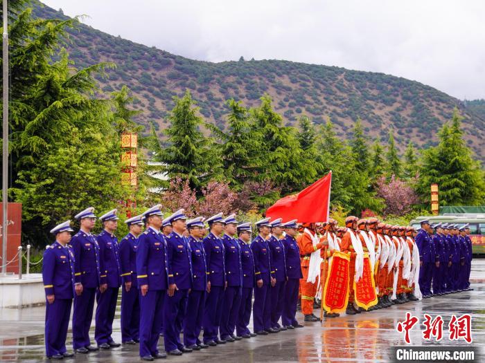 林芝市森林消防支隊營區(qū)人員列隊歡迎駐防分隊歸來?!±顕鵂c 攝
