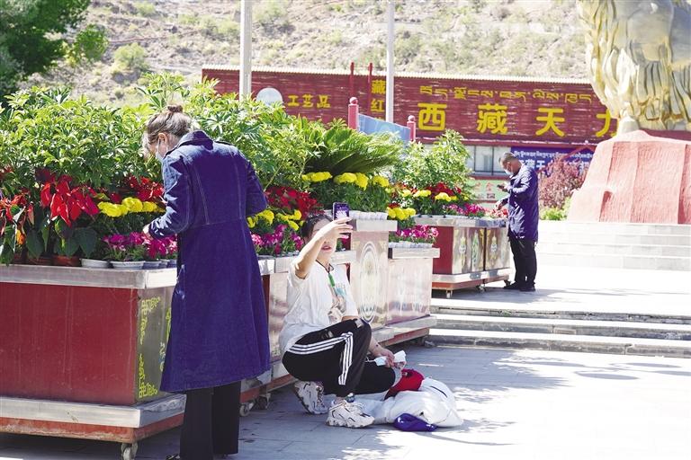 如今,走在市區(qū)街頭或公園,隨處可以看到開花的樹種,有的已經凋零,有的開得正艷,有的含苞待放。在布達拉宮腳下的北京中路道路兩側櫻花全面盛開,粉紅色的櫻花宛如云霞,花瓣隨著微風簌簌落下,煞是浪漫。將初夏的北京中路裝扮成一幅美麗的畫卷,吸引許多市民和游客賞花拍照。