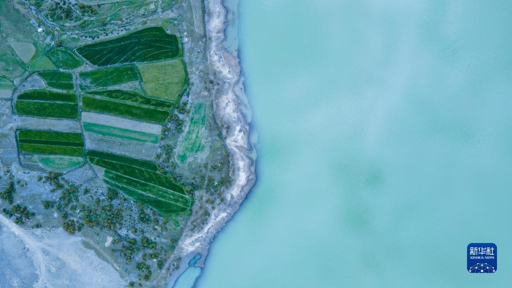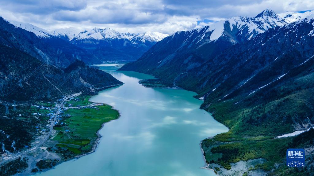 這是5月30日拍攝的然烏湖風(fēng)光(無人機(jī)照片)。新華社記者 范帆 攝