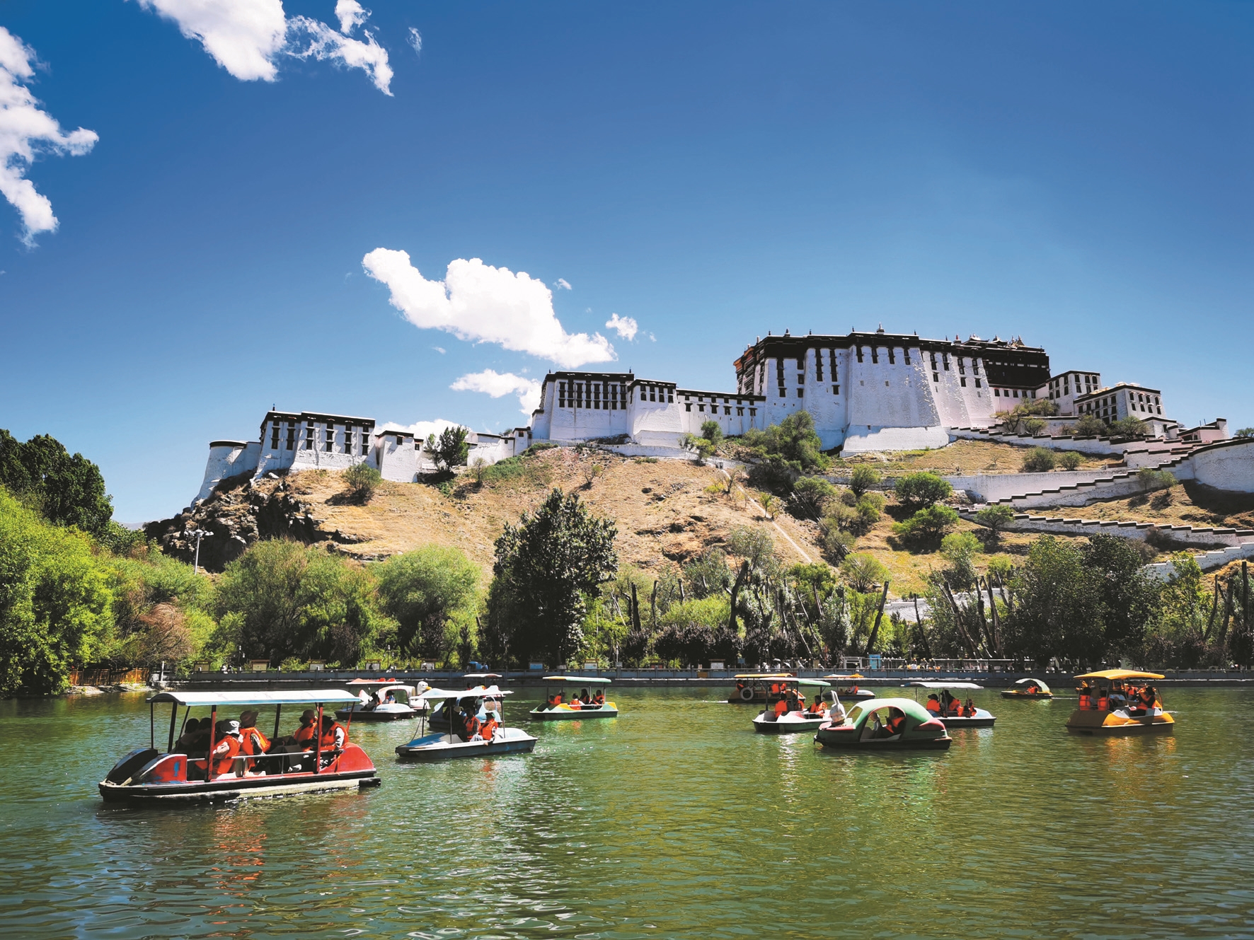 圖為市民游客在宗角祿康公園乘船游玩。拉薩融媒記者 賀艷麗攝