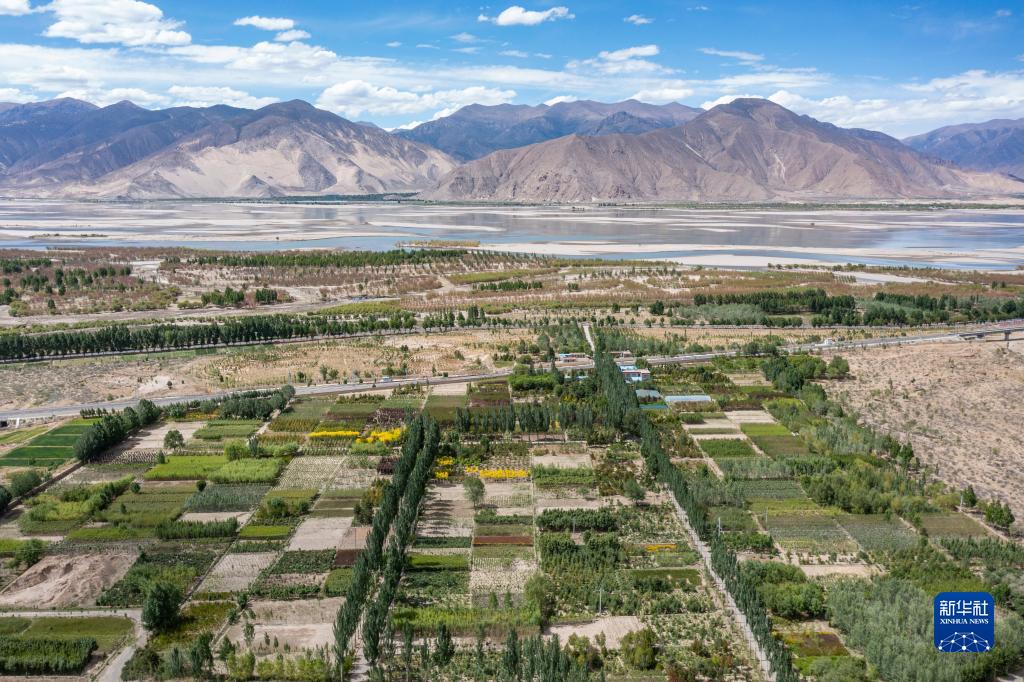 這是邊久經營的位于西藏山南市扎囊縣的苗圃,這里曾經是一片沙礫地(5月27日攝,無人機照片)。新華社記者 孫非 攝