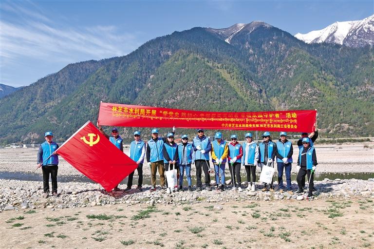 圖為活動結(jié)束后林芝市水利局干部職工合影。記者 胡文 攝