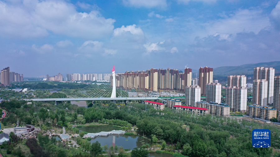 這是6月4日在青海省西寧市拍攝的一處濕地公園(無人機(jī)照片)。新華社記者 張龍 攝