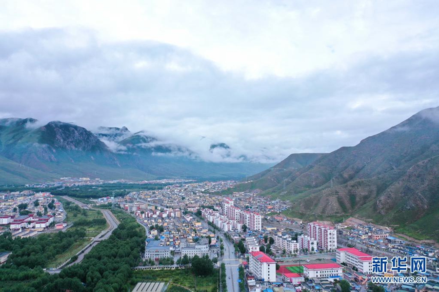 這是2021年8月7日拍攝的玉樹市城區(qū)(無人機照片)。新華社記者 吳剛 攝