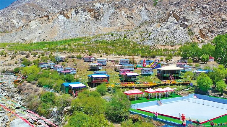 拉薩的夏天,是林卡的季節(jié)。進入夏季以來,前來維巴村林卡游玩的市民絡繹不絕,一派熱鬧景象。走進這些林卡,綠樹掩映、流水潺潺、鮮花開放、溫度宜人,一頂頂帳篷散落在小溪邊更顯詩意,帳篷旁寬敞干凈的游泳池在陽光的照耀下泛著點點金光,人們漫步草地上悠閑地賞景,享受著夏日里的清涼。目前,維巴村共有25家大大小小的林卡,其中不乏網(wǎng)紅林卡,一到節(jié)假日林卡里就會出現(xiàn)火爆的場面。