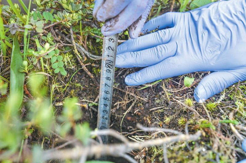 前期的研究表明,海拔越高,增溫速率越明顯。王濤站起身,山對面的雪山下,海拔4500米的地方,觀測站還布設了同樣的增溫設施?!拔覀兙褪且闱宄@種增溫會對土壤碳庫產(chǎn)生什么影響,影響的機制是什么?!?/p>