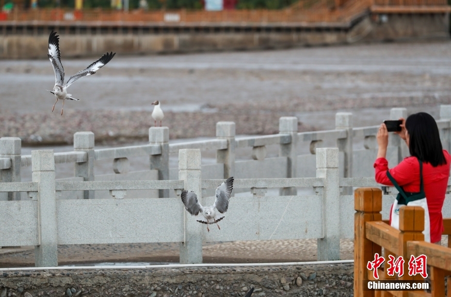 8月11日,青海省海北藏族自治州剛察縣,沙柳河國家濕地公園內(nèi)的大量水鳥吸引游客?!?中新社記者 賈天勇 攝