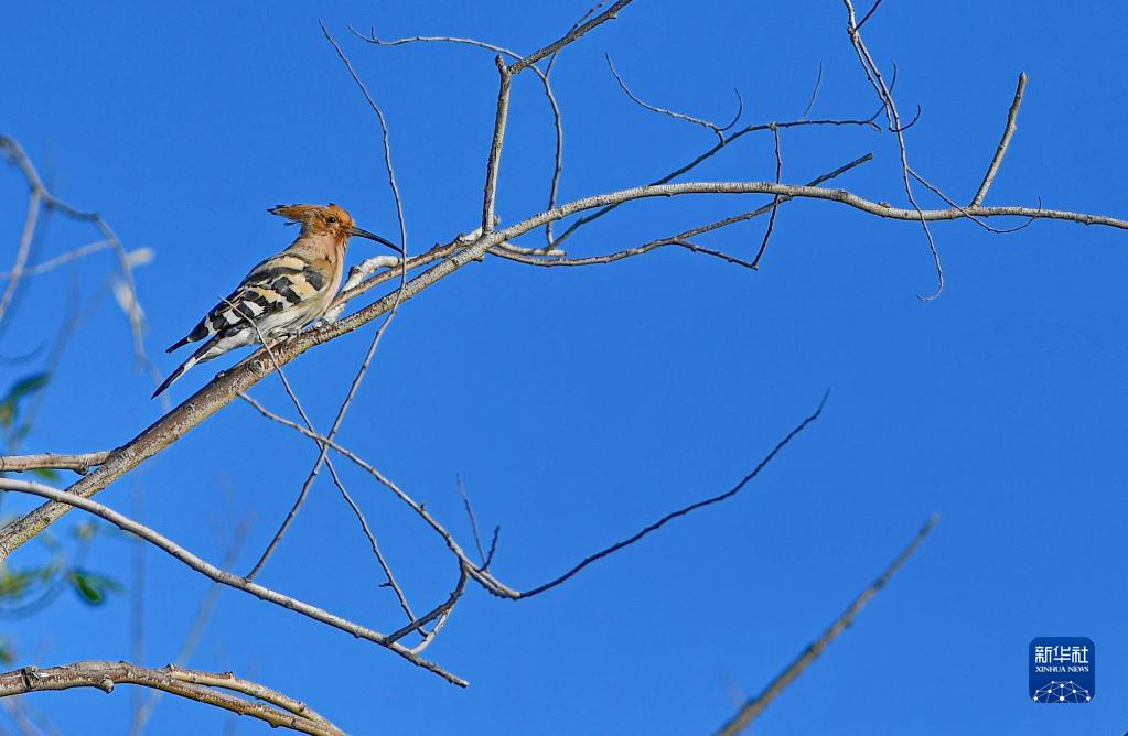 這是棲息在樹枝上的戴勝(8月25日攝)。新華社記者 張汝鋒 攝