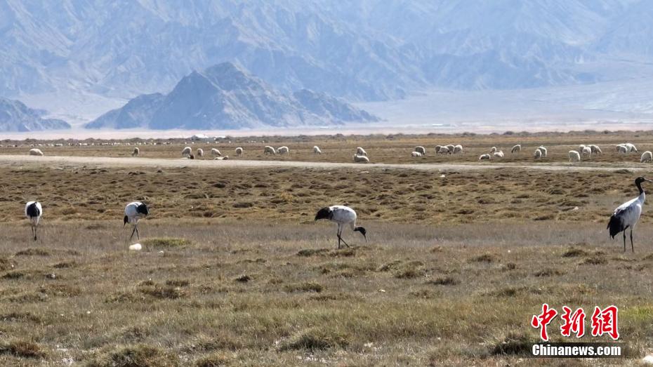 柴達木盆地烏蘭東大灘濕地現(xiàn)“鳥類大熊貓”黑頸鶴