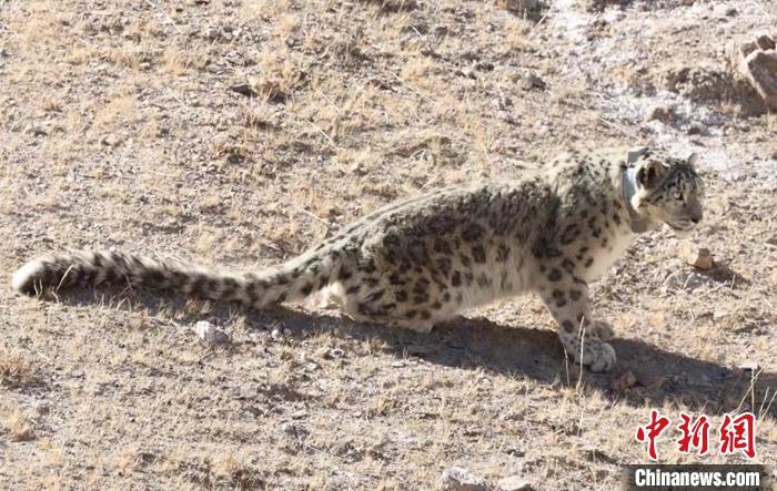 資料圖為佩戴衛(wèi)星項(xiàng)圈的雪豹“祁跡”。 中新社發(fā) 祁連山國家公園青海省管理局 供圖