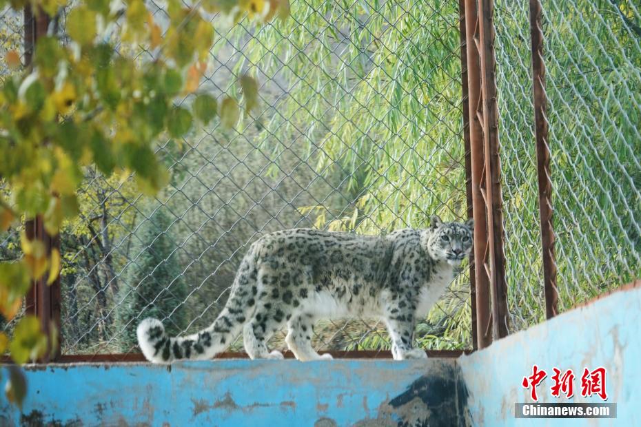 10月23日,國際雪豹日。在西寧野生動物園內(nèi),雪豹們悠然閑坐,時而張嘴打瞌睡,時而爬高上低展示“功夫”,萌態(tài)十足。圖為西寧野生動物園內(nèi),一只雪豹爬上圍墻散步。 馬銘言 攝