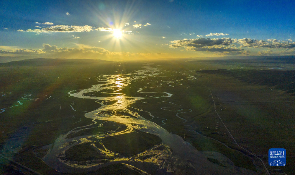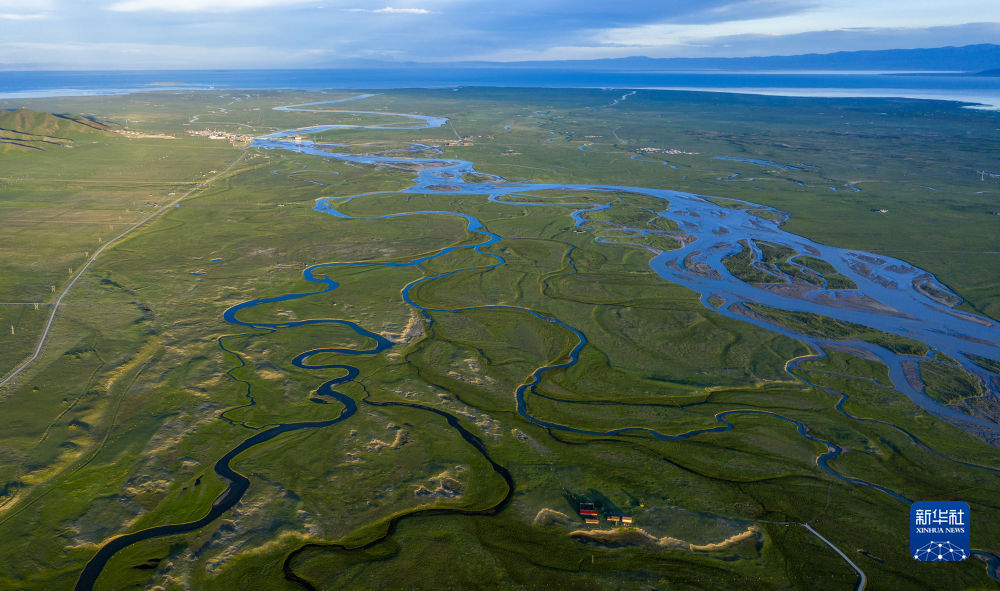 這是青海湖布哈河濕地一景(2020年7月19日攝,無人機(jī)照片)。新華社 楊濤 攝