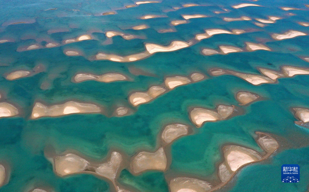 這是青海湖鳥島濕地一景(2020年7月17日攝,無人機(jī)照片)。新華社 楊濤 攝