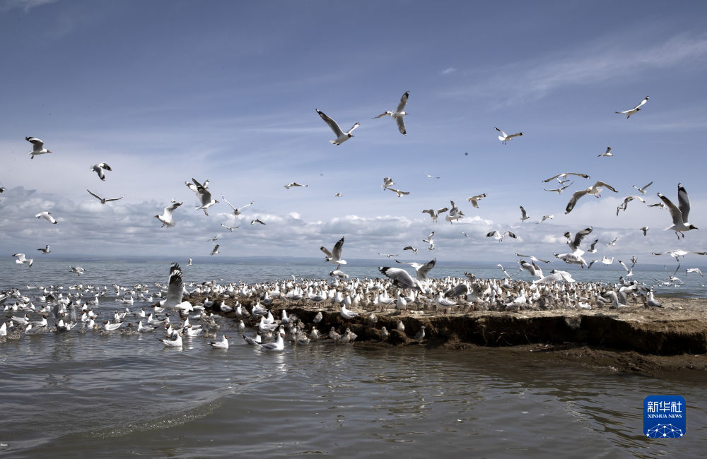 這是2020年4月8日在青海省海北藏族自治州剛察縣青海湖畔拍攝的棕頭鷗。新華社記者 張龍 攝