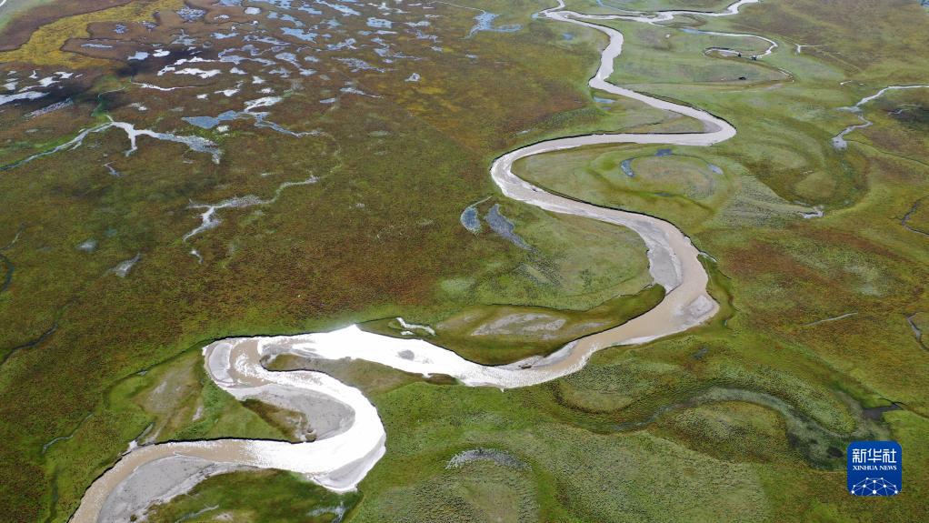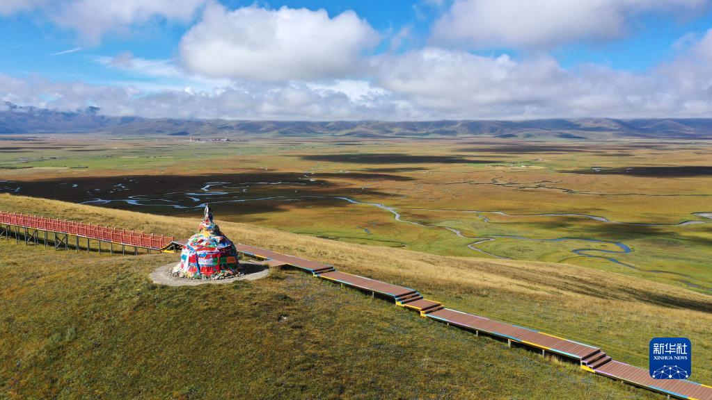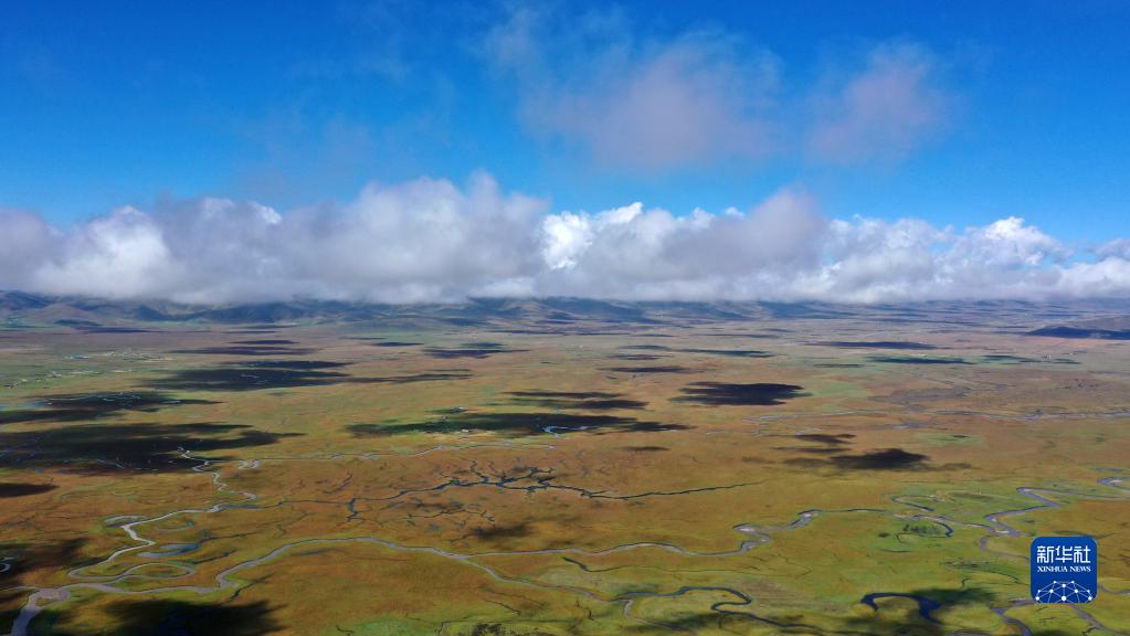 這是瑪曲縣阿萬(wàn)倉(cāng)濕地秋景(2022年9月21日攝,無(wú)人機(jī)照片)。新華社記者 陳斌 攝