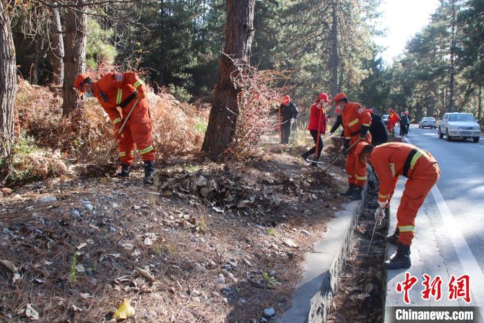 消防隊員和地方民眾一起清理林下可燃物。 王澤棟 攝