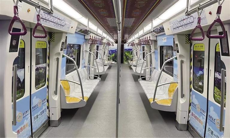 記者看到,在天津地鐵五、六號線文化中心換乘站點和地鐵一號線下瓦房換乘站點,“昌都元素”已實現(xiàn)全覆蓋。“津藏民族團結(jié)號”主題列車經(jīng)過精心打造,充滿濃濃“西藏味”,通俗易懂的宣傳語讀起來朗朗上口、充滿視覺沖擊力的照片震撼人心。地鐵站臺層承重柱、地鐵屏蔽門、車廂內(nèi)門窗、車壁、頂部這些醒目位置,都布置了圖文并茂、通俗易懂的宣傳海報和標語。