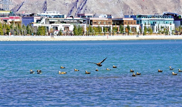 冬日,眾多鳥類匯聚拉薩河畔,勾畫出一道美麗的“飛翔風(fēng)景線”。